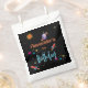Faça uma festa de aniversário com este saco de favelas personalizado da idade do design do Rocket Space Rocket Personalize o saco de favores com suas próprias informações que são facilmente inseridas no modelo. O design tem foguetes, planetas e estrelas girando sobre um fundo preto. A tipografia da idade espacial é facilmente transformada em sua bolsa pessoal de aniversário.