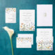 Este design apresenta uma fileira de flores silvestres delicadas de aquarela. Perfeito para casamentos de jardim de verão.