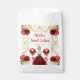 This sweet sixteen favor bag features an elegant gold frame, a beautiful princess with blonde hair and a red dress, flowers and a balloon. This is perfect for a sweet sixteen birthday party.