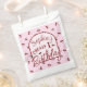 Um encantador design de cereja para comemorar o seu primeiro aniversário. Esta bolsa de favores de cereja dá uma sugestão de charme picante e vintage. Este trabalho de arte único tem vários tons de escarlate, blush, violet e chartreuse. Altere a cor de fundo, o gráfico e o texto para personalizar e personalizar completamente.