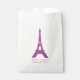 Saco de favores brancos chic com gráficos de uma Torre Eiffel rosa, brilhante. Personalize o texto personalizado cor-de-rosa para a festa do Sweet 16 da sua filha. Excelente para doces e bares de doces.