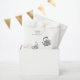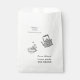 Saco de produto personalizado com ilustrações de xícara de chá e chaleira fofas e uma fonte de máquina de escrever para todas as suas informações, dando a este item aquele visual rústico