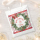 A dádiva é facilitada nesta época de férias com estas bolsas de Natal únicas. A design apresenta uma coroa festiva de feriado em um elegante fundo vermelho riscado, personalize o texto você mesmo quando você