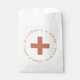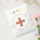 Para o Kit de Emergência (também conhecido como Kit Hangover) colocar um saco de boas-vindas de casamento de destino, com algum dentro de remédio. Tem uma cruz no centro e um fazer de texto arquivado ao seu redor. Por cima, há a mensagem "Na doença e na saúde" e, por baixo, há os nomes da noiva e do noivo e a data. O texto está em pequenos bonés. O texto e a cruz são terracota (marrom). O saco é branco por padrão, mas você pode mudá-lo para kraft se preferir.