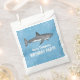Esta design bonita apresenta uma simples decoração de animais azuis, um oceano de água de festas de piscina, com um animal marinho de tubarões-d-água, uma vida marinha selvagem, com peixes-tubarões cinzas marinhas pretas, uma festa de natação de natação divertida no verão, uma festa de aniversário de criança, uma sobremesa de biscoito para ir, para uma bolsa de papel a favor da festa de aniversário, uma sobremesa branca para tratar o saco