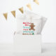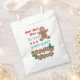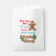 "Treat yourself" Christmas ecru favor bags with gingerbread man and heart-shaped gingerbread cookies with "Merry Xmas" icing, decorated with holly.