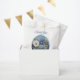 Adicione um toque de elegância aos seus cartões de convite personalizados com gráficos de textura denim enfeitados com rendas de creme branco e joias de fantasia.