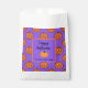 Sem truques só trata. Festa de Halloween a favor de doces tratem bolsas, deseje aos seus amigos um Feliz Dia das Bruxas com caras laranja-jack-o-lanterna num fundo roxo. Texto, fonte e cores podem ser alterados para adicionar um toque personalizado.