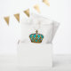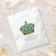 Chá de fraldas azul-turquesa e ouro favorece bolsas com azul-turquesa bonito e coroa-dourada e o texto de sua escolha.