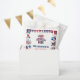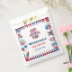 Uma bolsa de favor patriótica que é tão doce no exterior quanto os favores dentro! Comemore o primeiro aniversário do seu bebê no Dia da Independência com um tema patriótico de estrelas e listras. "Um Homem Americano" acrescenta ao tema patriótico da celebração do dia da Independência Americana, vermelha, branca e azul. A design apresenta os elementos e o tema do orgulho americano com fogos de artifício, sorvetes, macarrão, doces, balões, diversão e frango.