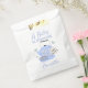 Um saco de favores super fofo de chá de fraldas com uma chaleira e uma xícara de cozinha bonitinha do estilo meio século, rodeada por bonito corações azuis. Uma design tão divertida com a escrita do rico e fácil de personalizar com um nome pessoal. Um favorito com mulheres fazendo festas de chá chá de fraldas.