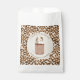 Tema de chá de fraldas "Um bebê está a fazer a produção" com Ilustração de café gelado num jarro de mason tocado com chocolate e caramelo com borda de café.
