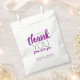 Essas bolsas de favores de sobremesa impressas personalizadas fazem um grande favor para seus doces, pipocas, donuts, biscoitos e tantas sobremesas deliciosas. Estes pequenos pacotes fazem um grande presente para o seu convidado levar os seus doces para casa. O design apresenta as palavras 'Um doce obrigado de nós a você' em uma tipografia moderna, roxa escura e cinza prateada. Personalize-o com o nome, local e/ou data de casamento do casal.