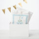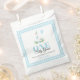 Um ganso de bobo e o saco de favores florais de primeiro aniversario de gingham azul. Este adorável design de primeiro aniversário mostra um ganso cômico adorado com um chapéu de aniversário azul e um arco, tudo colocado dentro de um charmoso quadro branco com cantos arredondados. O ganso é empoleirado sobre um adorável arranjo de flores, com um balão azul com o número 1 flutuando da cauda. O convite diz brincalhão "Um ganso de bobo" e é associado a um encantador padrão azul e branco de gingham.