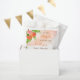 Celebre a chegada de uma menina precioso com o nosso encantador modelo "A Little Peach Is On Her Way!". Esta design deliciosa mostra um galho gracioso de fruta de pêssego adornada com pêssegos e flores delicadas e deliciosas, todos colocados contra um fundo de cor d'água cor de pêssego. O quadro inferior apresenta um encantador pêssego e uma floração de pêssego, acrescentando um toque de capricho à estética geral. Aproveite a alegria e a doçura desta ocasião especial com esta modelo maravilhosamente trabalhada.