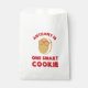 Crie suprimentos de festas personalizados para celebrar seu biscoito inteligente. Estas bolsas de tratamento de papel divertidas são perfeitas para festas de formatura. Eles apresentam o slogan "UM SMART COOKIE" junto com uma ilustração de um biscoito de sanduíche de baunilha vestindo alguns óculos vermelhos.