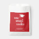 A graduação moderna favorece o saco que apresenta um design simples e fofo com um boné formando e "um biscoito inteligente" em uma escrita grossa juntamente com o nome do formando, o ano de aula e o nome da escola em branco sobre um fundo vermelho. A cor de fundo pode ser alterada para qualquer cor que você desejar. Estas bolsas favoritas são perfeitas para um formando feminino e são uma forma excelente de adicionar um toque pessoal aos seus favoritos para festas.