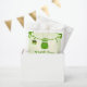 Um design de um equipamento de bebê verde desenhado à mão com um padrão de shamrock, pendurado numa videira de pavimentões, combinado com calçados Leprechaun e um chapéu correspondente. As camarões decoram as bordas, colocadas sobre um pano de fundo sutil e festivo.