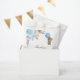 Para um chá de fraldas elegante e moderno, celebrando um menino. Um fundo branco. Decorado com florais azuis claros, grama-pampas e ursinho-peluche segurando um balão. Personalize e adicione um nome. Com o texto: Obrigado e Chá de fraldas.