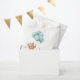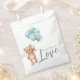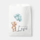 Esta ilustração de aquarela adorável de um ursinho de pelúcia castanho com balões azuis num tema minimalista.