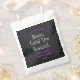 Boos e Booze Adultos do Halloween Cocktail Suite. Esta bolsa personalizada de favoritos personalizada tem uma mensagem personalizada sobre um fundo branco preto. A tipografia assustadora e um tema preto, verde e roxo dão aos convidados uma decoração divertida naquilo que certamente será uma festa espetacular! Todo texto é editável - basta clicar no botão personalizar à direita. Veja os itens de decoração correspondentes na coleção!