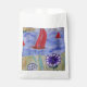 Em um dia ensolarado de verão, a colina que olha para o mar está coberta de flores lindas e coloridas. Há uma forte brisa quente e muitos barcos com velas vermelhas brilhantes navegam nas águas azuis da baía. Esta é uma aquarela vibrante e alegre que trará um salto de cor brilhante para sua casa.