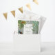 Um design de pássaro de pavão vintage com verde tropical e fundo cor damasco. Este design é ideal para todas as estações. Um elegante design de aquarela num tema contemporâneo. Um obrigado de casamento clássico você favorece a bolsa com penas gloriosas e elementos modernos. Os convites de casamento e outros artigos de papelaria também estão disponíveis.