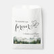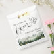 An elegant Wedding design with watercolor mountains and pine trees that you can customize with your details.