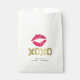 Arrume suas favoritos para festas nessas bolsas super bonitas! Perfeito para sessenta e seis doces e Dias de os namorados, bolsas brancas apresentam "XOXO" em tipografia falsa de bruxaria dourada com impressão de lábio rosa fúchsia. Personalize com sua escolha de texto em uma fonte negra minimalista moderna. NOTA: folha de ouro é um efeito digital impresso que usa sutis variações de cor para imitar folhas de ouro; não é folha de ouro real.
