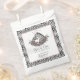 This Zebra Safari Baby Shower Little Wild One Party Favor Bag features a hand-drawn zebra mama and baby in detailed black ink, surrounded by mauve, lilac, and blush roses with delicate twigs for a soft, moody floral touch. Framed with dark blush and bold black-and-white zebra print for striking safari contrast.