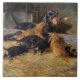Um impressão de "Dachshances with Puppy in the Stable" adorável, uma pintura do século 19 do artista alemão Hermine Biedermann-Arendts que viveu de 1855-1916.
