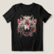 Crimson paint drips and blossoms surround the wolf, creating a striking contrast between purity and passion. The detailed filigree elements, sacred symbols, and floral overlays give the image a regal, ritualistic presence that feels both sacred and fierce. This artwork resonates with themes of protection, inner strength, and transformation.