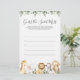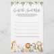 Animais Safari com o tema chá de fraldas adivinhação o doce jogo de bagunça apresenta uma ilustração de animais safari com aquarela e verde-aquarela eucalipto garland e uma elegante letra de estilo manuscrito.