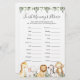 Os animais Safari têm o cartão de jogo de final de mamãe com o tema chá de fraldas apresenta uma ilustração de animais safari com cores aquáticas e verde-aquarelas eucalyptus garland e uma elegante letra de estilo manuscrito.