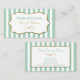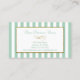 Um cartão de visita elegante, ele apresenta listras de menta e brancas com trim dourado e design de rolagem dourada. Excelente para maquiador, salões de beleza, cabeleireiro, planejador de eventos, decorador de interiores ou designer, coordenador de moda, consultor e coordenador de casamento, técnico em unhas, cosmetólogo, esteticista, fotografia, florista ou qualquer pessoa que procure um design sofisticado, glamouroso e de luxo para seus cartões de visitas. Personalize a cor das faixas verdes da horta luxo de na moda usando o botão Personalizar.