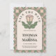 Customization Feature: Every element of this design is flexible. The geometric pattern colors on the back and the scalloped border are 100% adjustable to suit your wedding theme. Simply use the Zazzle design tool to pick your custom colors or change the text to your liking.