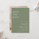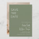 Um boho moderno Salve a placa Date que apresenta uma paleta verde de cor sage e design minimalista.