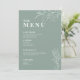 Este menu é caracterizado pelo estilo boho, trabalho de arte floral e cor verde-sábio, com uma mistura de diferentes estilos de fonte, muitas vezes em diferentes tamanhos, para criar um aspecto exclusivo e eclético que faz desses menus uma estética natural. Impresso em estoques de cartolina de alta qualidade, eles certamente impressionarão seus convidados e darão o tom para seu dia especial. Confira nossa coleção: https://www.zazzle.com/collections/floral_sage_green_wedding-119898373740526358
