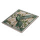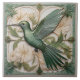 Alivio verde-sábio, azul-lacado e creme, azulejo cerâmico de Hummingbird inspirado pelo Art Nouveau e pelos movimentos Artes e Artesanatos com fundo floral. Perfeito para um presente de inauguração de casa usar como trivit ou para adicionar um azulejo decorativo na sua própria lição. O azulejo cerâmico é liso, com um efeito falso 3D. Este é o azulejo virado para a esquerda. Emparelhe-o com o azulejo virado para a direita para uma decoração de marés simétrica.