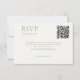 Este cartão de resposta RSVP chic apresenta um código QR do site de casamento e um adorável monograma de casal em uma combinação de cores verdes. Um conjunto contemporâneo de fontes também em verde-sábio, contra fundo de marfim, dá um tom elegante e chic