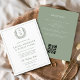 Crie uma impressão de eterno com um convite formal de casamento monograma da crista floral com um código QR personalizado para fácil acesso de convidado aos detalhes do evento. Este convite elegante combina designs florais clássicos com uma crista personalizada, acrescentando um toque sofisticado ao seu tema de casamento. O código QR simplifica RSVPs, direções e outras informações importantes, oferecendo conveniência em um formato moderno. Perfeito para casamentos formais, este convite combina tradição e tecnologia, assegurando que seu dia especial seja bonito e organizado.