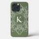 Sage Green Mandala Monograma Simples e Moderno iPhone 13 Pro Case. Um design moderno com uma mandala floral geométrica e um monograma que você pode personalizar. O monograma é criado com linhas limpas simples e tem um aspecto minimalista.
