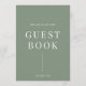Um símbolo de casamento moderno e elegante para o seu livro de convidados apresenta um design verde e branco de sábio minimalista com linhas modernas, uma letra elegante e fonte serif clássica. Veja os itens correspondentes na coleção "Sage Green Modern Elegant".