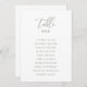 Cartão de lugar por mesa, moderno e elegante, apresenta um design verde e branco minimalista. Personalize com os nomes de seus convidados e os números de tabela com o modelo fácil de editar, apresentando uma fonte de script elegante e uma fonte de serif de classe. Veja os itens correspondentes na coleção "Sage Green Modern Elegant".