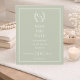 A sage green colored background, white colored frame. Personalize and add your monogram initials, names and the details.