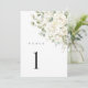 This sage green and white floral table number features soft watercolor roses and airy botanical greenery, designed for elegant, modern classic wedding receptions. The clean layout and balanced typography ensure excellent readability while adding a refined decorative touch to guest tables.