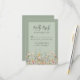 Complete your wedding stationery set with this refined RSVP reply card featuring soft, nature-inspired details. The design showcases a calming sage green tone with delicate wildflowers arranged along the edges, highlighting muted pink, yellow, lavender, and blue blooms paired with gentle green leaves for an elegant garden feel.