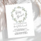 Um convite para chás de fraldas botânicos, neutro em termos de gênero, que apresente uma coroa de folhagem de aquarela em tons de verde-sábio e cinza. O texto é cinza de carvão/sans não-pretas, com destaque para a caligrafia de estilo de escrita manual. Personalize-o com os detalhes do seu chá de fraldas. O reverso é uma sombra correspondente de verde sábio.