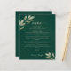 Esses lindos menus de casamento são simples, elegantes e na moda, enquanto ainda são amigáveis e baratos. Eles apresentam um design rústico com folhas de cor-de-água verde pintadas manualmente e caligrafia de script em um fundo verde-esmeralda marmoreado. Perfeito para uma recepção rústica ou ao ar livre.
