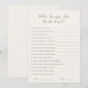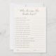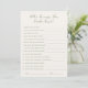 Um cartão de jogo "Quem conhece melhor a noiva?", com fonte verde escrita à mão e texto totalmente personalizável. O cartão de jogo baixável vem num esquema de cores neutras de sage green e ecru.